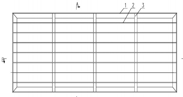 2、從工藝上看,傳統的鋼格柵板需要噴砂,端切,組焊,刷漆;本實用新型需要端切,組焊,噴涂;由此可見,本實用新型的加工步驟更少,另外,本實用新型的組焊過程更為簡單;